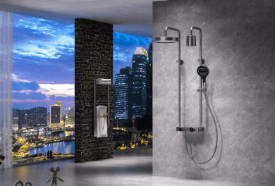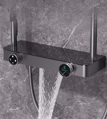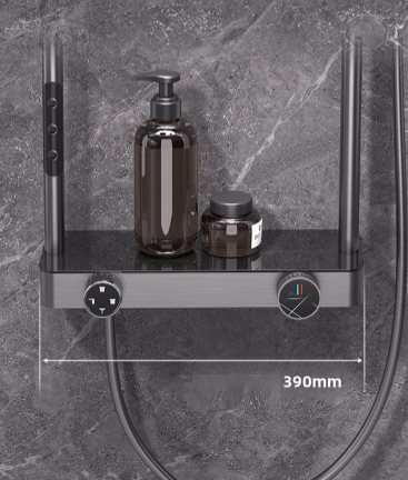 V spodnej časti nájdeš vodopádový výtok a policu širokú 390 mm, ktorá unesie všetky sprcháče, šampóny aj menšie dekorácie. Bedrový sprej osvieži telo po náročnom dni a zároveň zníži potrebu zbytočne sa otáčať pod sprchou.