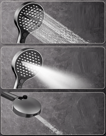 Z každého výstupu tečie voda podľa tvojho výberu: hlavová sprcha, ručná sprcha alebo spodný výtok. Prepínaš ich cez graficky značené kolieska, takže ovládanie zvládneš bez zaváhania.