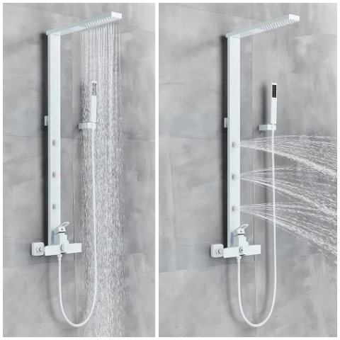 Multifunkčný sprchový set – Säjok predstavuje moderné riešenie pre všetkých, ktorí si cenia kombináciu štýlu a funkčnosti vo svojej kúpeľni. Tento sprchový systém má matnú čiernu alebo bielu povrchovú úpravu, ktorá kúpeľni dodáva elegantný a sofistikovaný nádych. Či už si vyberiete čiernu alebo bielu verziu, Multifunkčný sprchový set – Säjok dokonale zapadne do interiéru každej modernej domácnosti. Výnimočný dizajn nie je len esteticky príťažlivý, ale aj praktický – tieto farby odolávajú vodnému kameňu a uľahčujú údržbu povrchu.