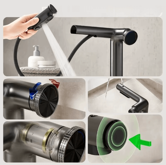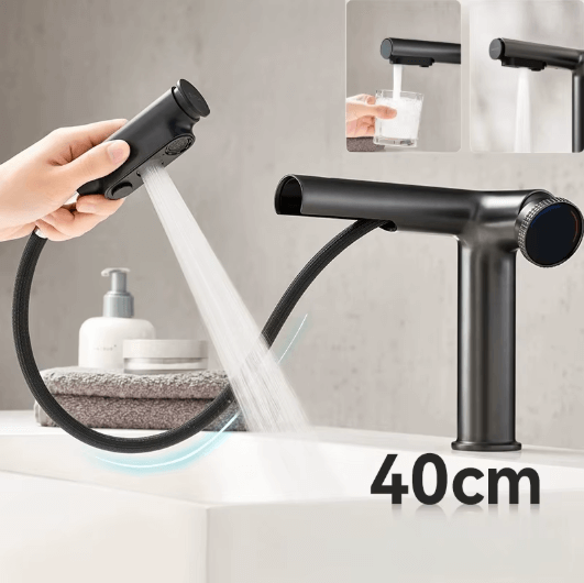 Predlžovacia kúpeľňová batéria – Owhala vás očarí dôvtipným prepojením estetiky a praktickosti. Vďaka výsuvnej sprche s dĺžkou až 40 cm prináša nevídaný komfort pri každodenných rituáloch. Trojrežimová sprchová hlavica umožňuje rýchly výber medzi jemným prúdom, silným tlakom a vodopádom, čo prispieva k účelnosti a variabilite použitia. Grafitová verzia pôsobí drsne a decentne, biela vyžaruje čistotu a chrómová verzia zas dopĺňa každé moderné umývadlo.