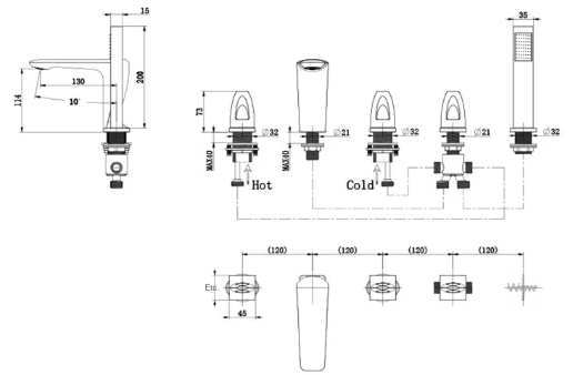 Ovládanie teplej a studenej vody zabezpečujú dva samostatné pákové ventily, ktoré umožnia presné nastavenie teploty a prietoku. Výtoková batéria má praktickú výšku 114 mm a dĺžku 130 mm, takže pohodlne napustíte aj hlbšie vane.