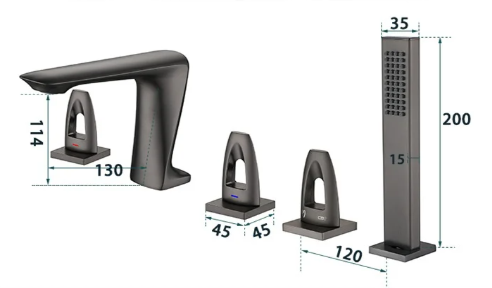 Batéria je dostupná v atraktívnych odtieňoch – brúsená zlatá, chrómová, grafitová a čierna. Povrch s jemným matným efektom pôsobí elegantne a zároveň sa ľahko udržiava. Inštalácia je do vaňe – všetky časti upevníte priamo na okraj vane alebo dosku.