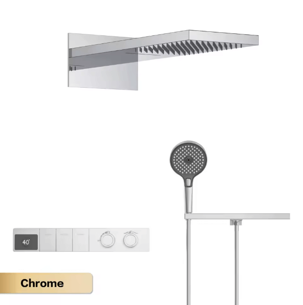 Najväčším benefitom tohto modelu je inteligentný LED displej, ktorý okamžite zobrazuje teplotu vody. Umožňuje presné nastavenie a spolu s otočnými gombíkmi a dotykovými tlačidlami zabezpečuje intuitívne ovládanie. Tri sprchové režimy – jemný dážď, široký vodopád a ručná sprcha – zaručujú luxusný wellness zážitok.