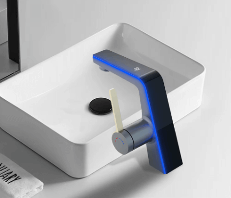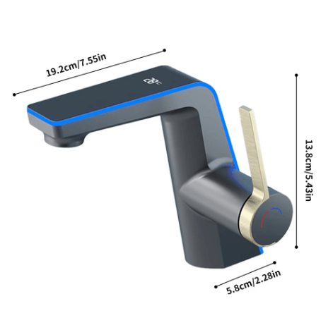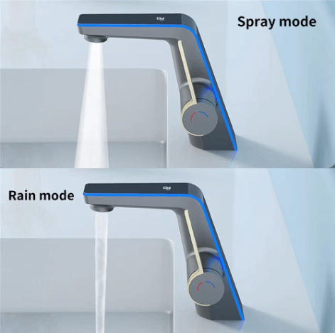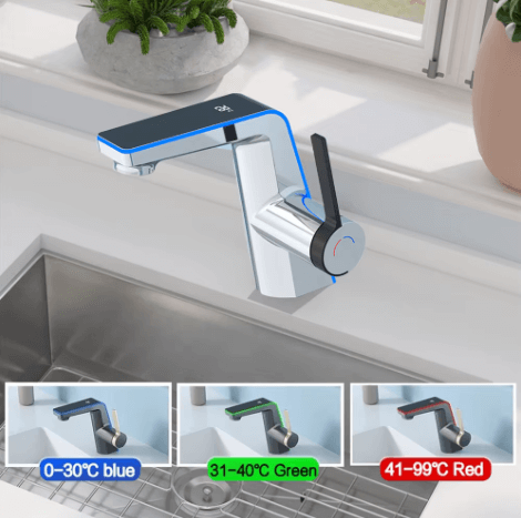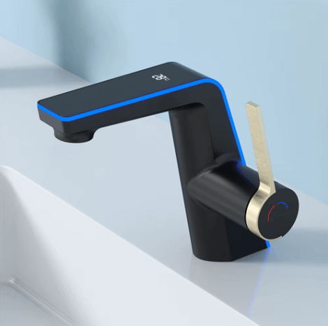 Kúpeľňová batéria s displejom – Kasuihku kombinuje inovatívnu technológiu a štýlový dizajn, ktorý sa okamžite stane dominantou každej modernej kúpeľne. Jej elegantná kombinácia čiernej a striebornej farby pôsobí sofistikovane a vkusne, zatiaľ čo LED displej pridáva prvok praktickosti. Tento displej zobrazuje aktuálnu teplotu vody, čím zvyšuje bezpečnosť a pohodlie používania. Navyše, farebné LED podsvietenie indikuje teplotu: modrá (0–30 °C) pre studenú vodu, zelená (31–40 °C) pre príjemnú teplotu a červená (41–99 °C) pre horúcu vodu.